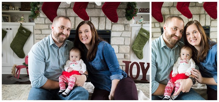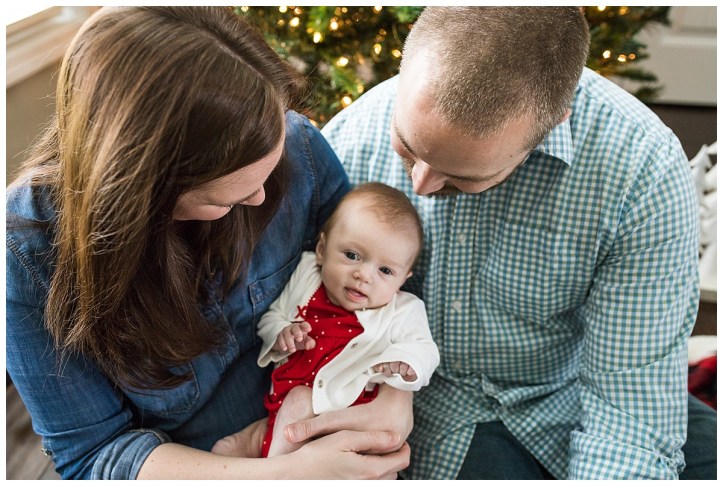 Last weekend I had the pleasure of photographing my co-worker & friends family for a little in home Christmas session and it was an honor to do so. Allison, Jacob and little Miss Hudson are the cutest little family and I’m so glad I’ve been dubbed the personal photographer for this family. 😉 And it’s honestly a good thing because even though Miss Hudson didn’t give me any smiles this go round, I know we will have plenty more!