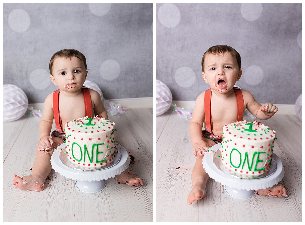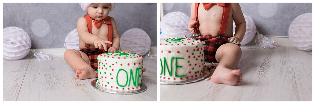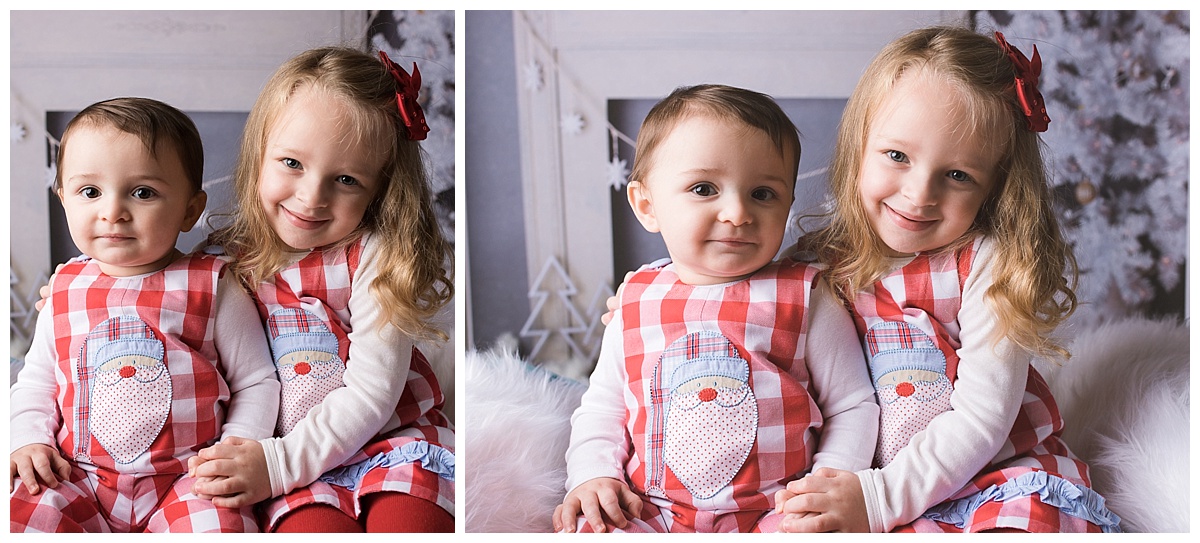 Ok ok, enough about me and all my rambling. This is what you came here for….Sullivan & Annabelle’s holiday portraits and cake smash! I was SO obsessed with their holiday outfits from Shrimp & Grits Kids. Check out their adorable selection of cute kids clothes over on their FB page. And now, check out these super cute photographs!