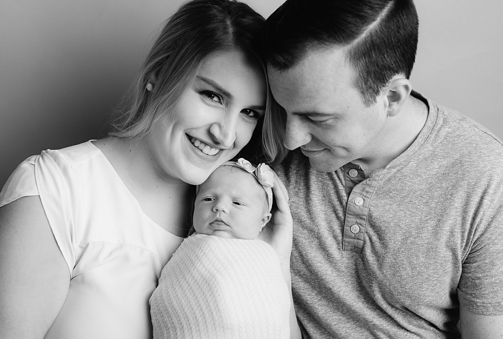 Last Monday evening I had the pleasure of meeting Kelly, Andrew and their precious baby girl, Addalyn. This little girl was SO curious and wide eyed. For our ENTIRE session she stayed awake and just watched me, stared at the lights and then made some adorable and funny faces which you’re going to see some of below.