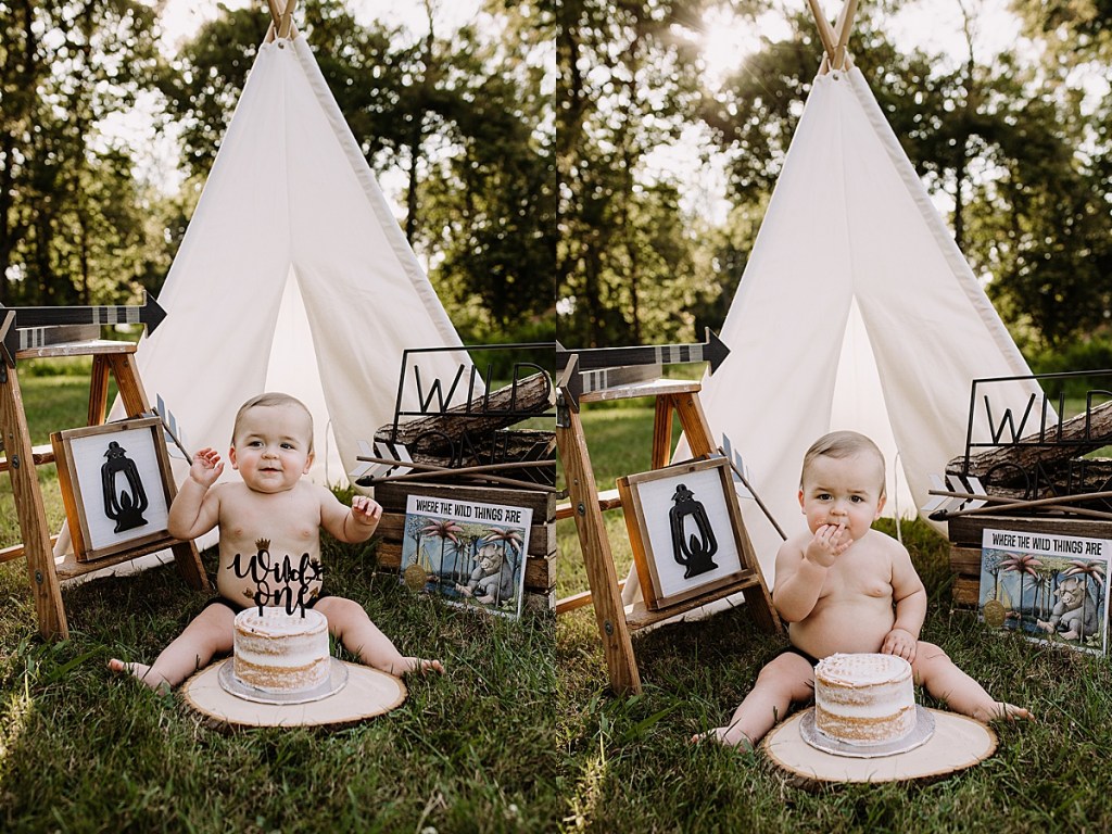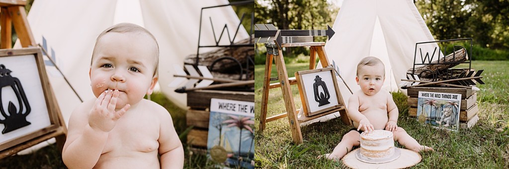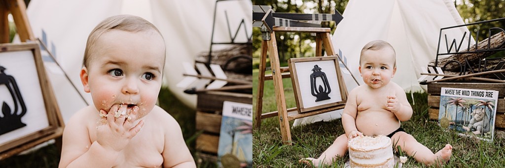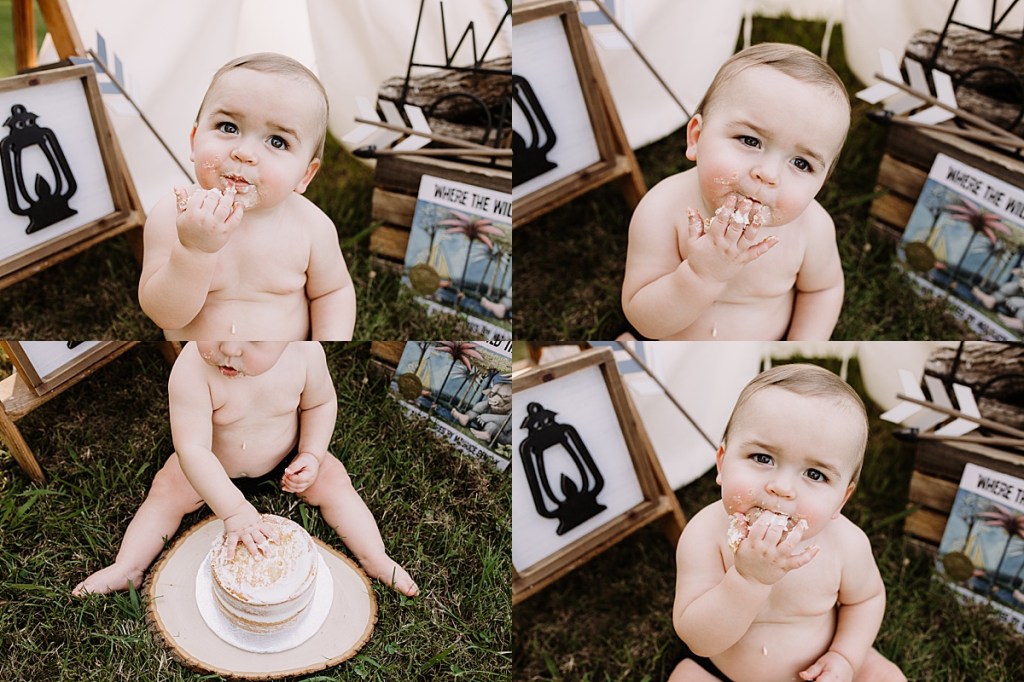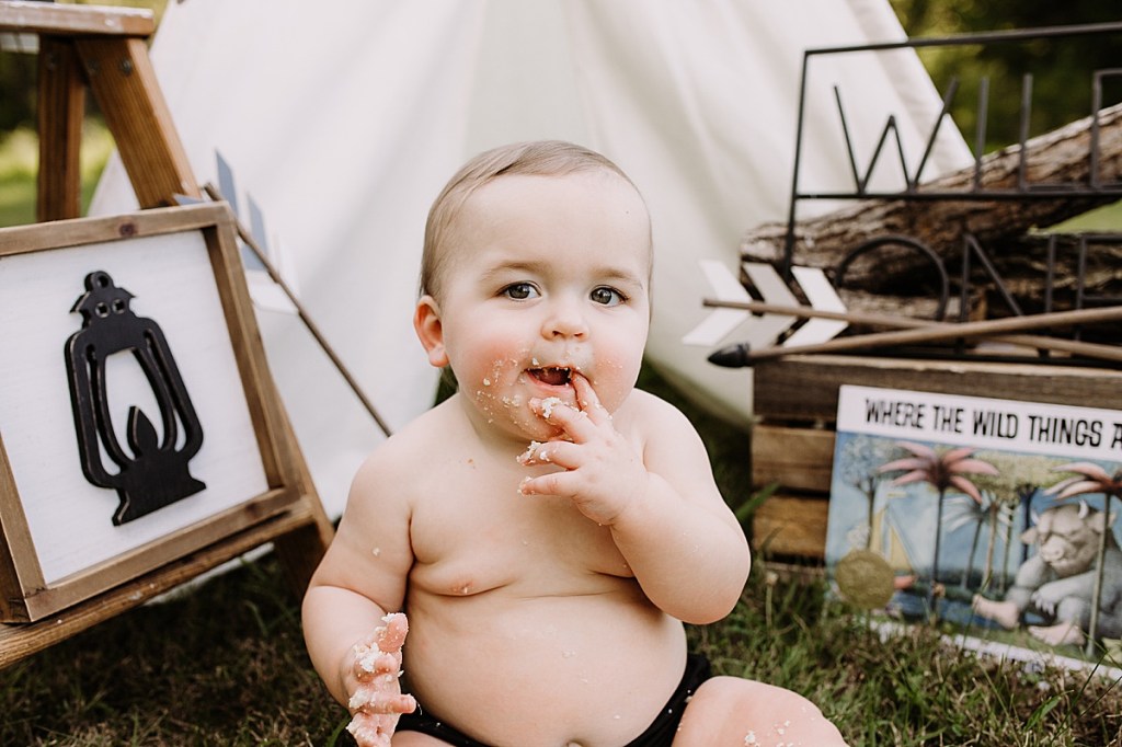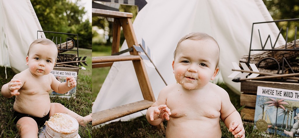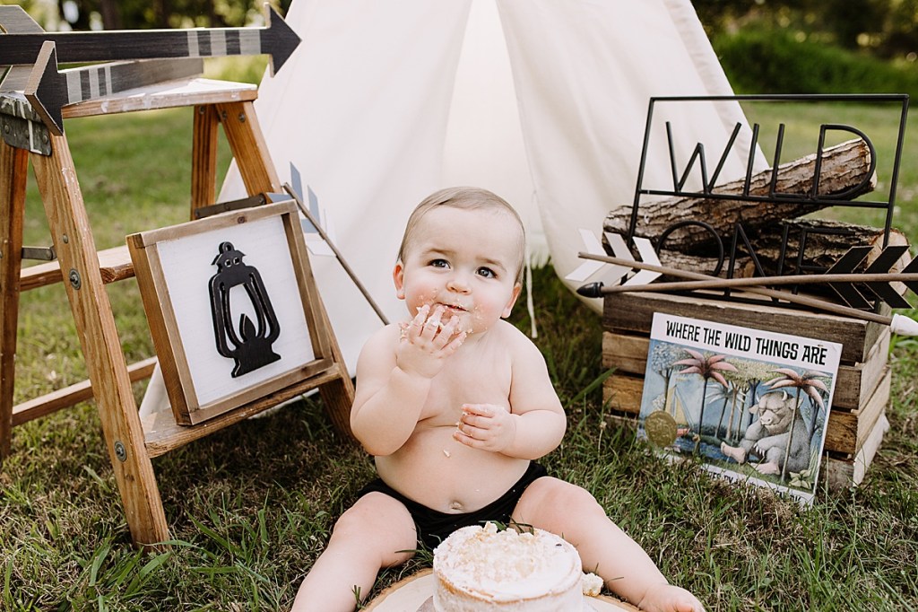 Anyway, Destiny had this adorable idea for a ‘Wild One’ cake smash outdoors so of course I was down for it. Tiffany Gray @ Tiffany’s Sweet’s and Treats made the cake of course and it looked delicious! Hudson seemed to really like it too!